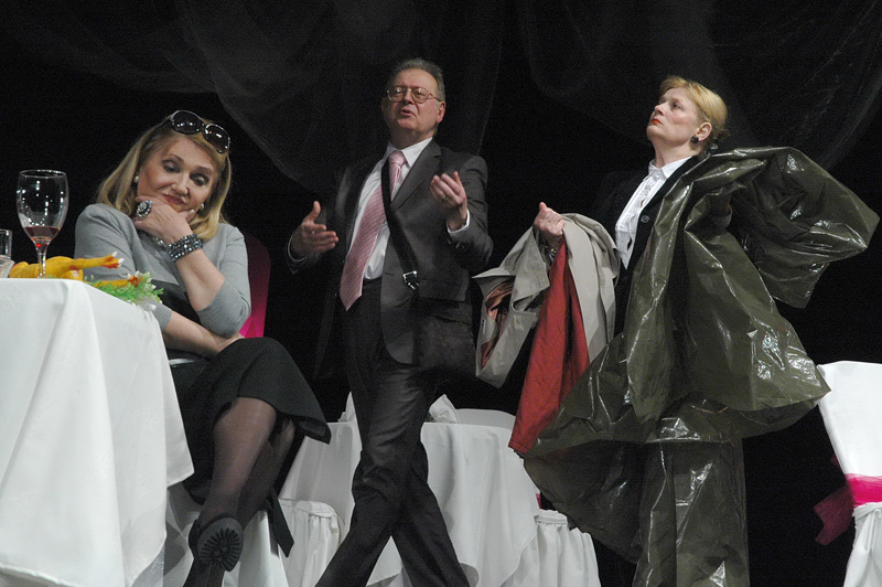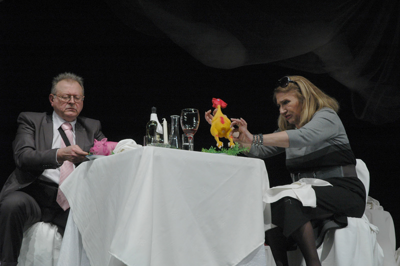 Urnebesna komedija Mirjane Bobić Mojsilović POGODI KO DOLAZI NA VEČERU, jeste priča o savremenim političkim, životnim, modnim i drugim trendovima: o žrtvovanju, ustupcima, čežnjama, istinama i sitnim lažima.